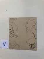 pen & ink London street scene, street corner with cat and people in the foreground