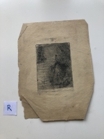 artists proof of self portrait etching. plate area complete, paper crumpled.