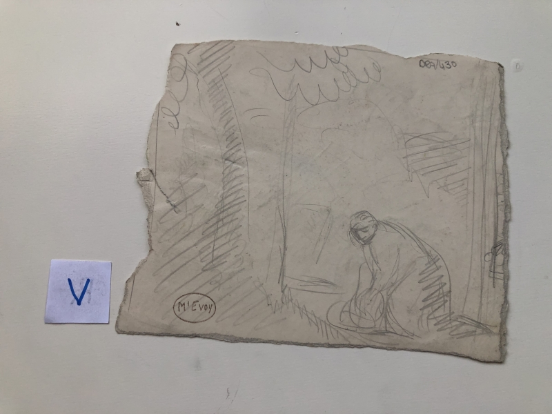 DRA/430. V: Figure at the base of a tree. R: Crossed out portrait studies