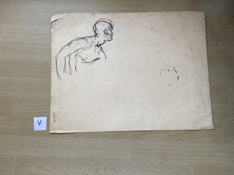 Drawing executed in dark pencil (crayon?) stamp on verso.