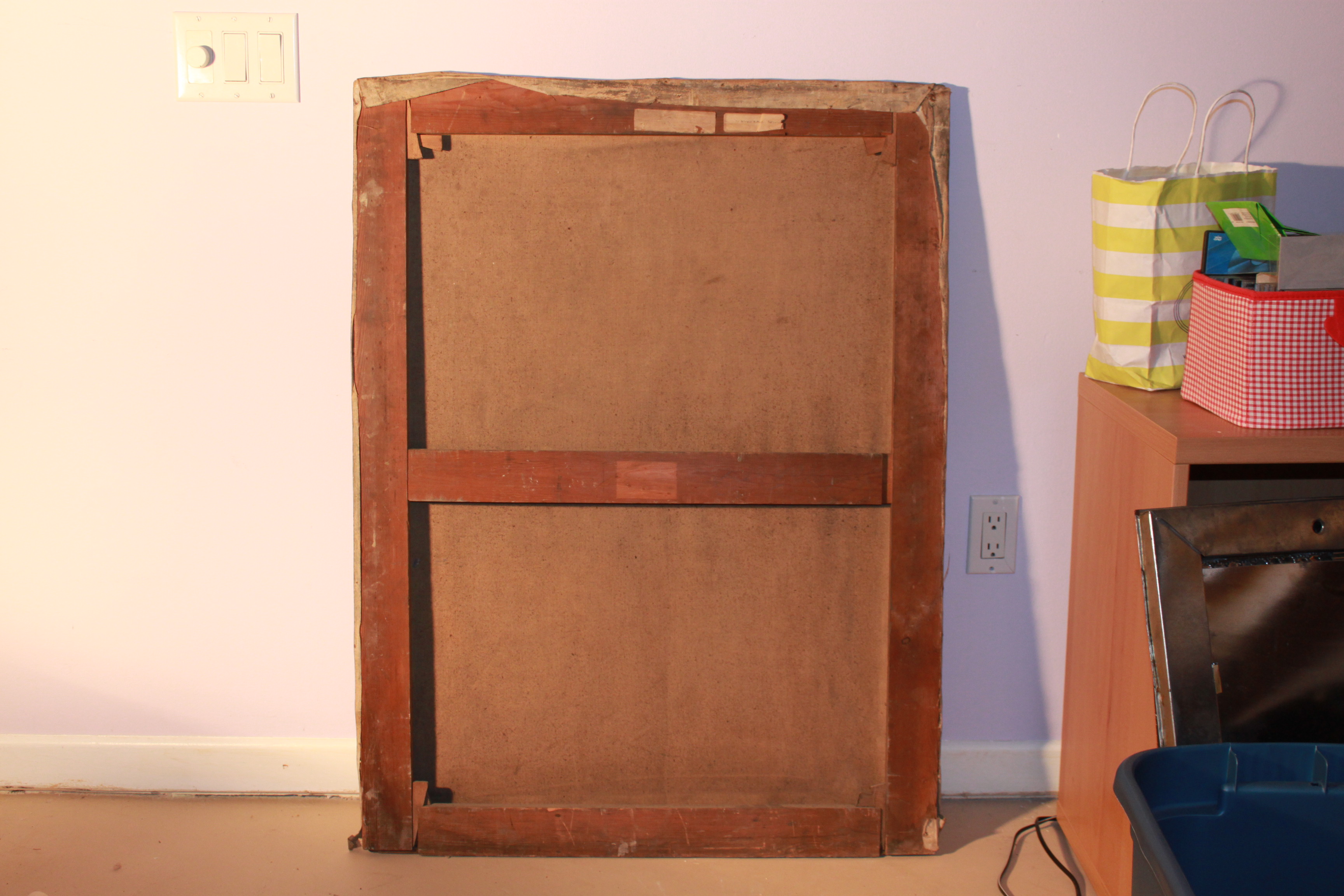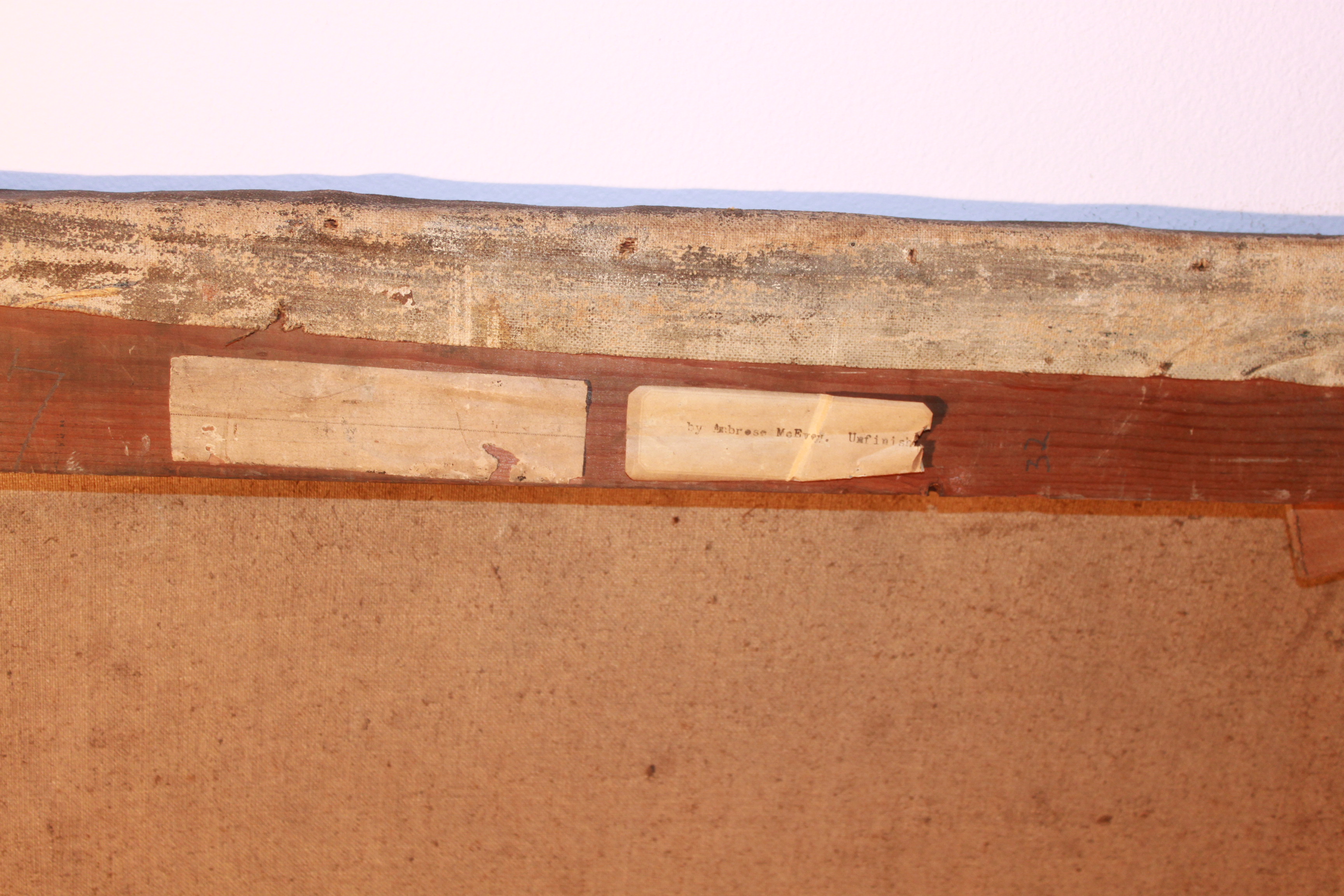 Painting has been heavily keyed out and the tacking margin has snapped along bottom edge, and partly along left side and top. Canvas is brittle, slack and deformed in ridges. some pant loss has occurred to the left of the sitters head. paint loss along bottom edge adjacent to tacking margin. Canvas has shrunk and tacking holes are now visible in painting plane along left edge, top edge. Surface has blanched heavily due to aged wax coating. Surface is also very dirty. Verso is dirty and dusty.